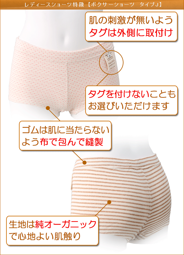 ショーツ レディース ボクサーショーツタイプJ ボクサーパンツ オーガニックコットン 下着 綿 パンツ インナー 婦人 女性 綿100% はきこみ丈深め Ledy's shorts Ladies pants Organic cotton